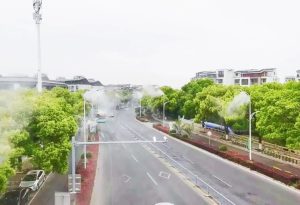 High-pressure fog spray system, using a 360-degree rotating nozzle, is to spray high-pressure water mist into the air, forming tiny water mist particles, interact with dust particles in the air, make it settle to the ground, so as to achieve the effect of settling, can be widely used in stone factories, construction sites, workshops, sand and other sites, can effectively inhibit dust pollution problems, It also cools and humidifies.
